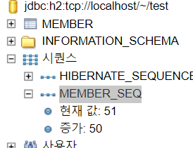 정리하면 2번째 호출(persist)에서 1번째 호출과 달리 50개를 가져왔다. 그리고 기존에 JPA 메모리에 저장되어진 SEQ를 3번쨰 persist에서 사용했다.