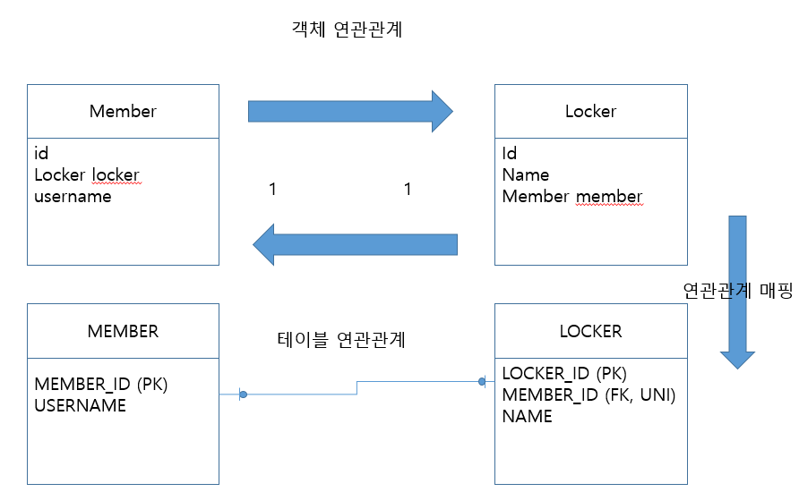 일대일은 거꾸로 해도 일대일 , 하지만 주테이블과 대상테이블을 정해주도록 하자. 왜? 외래키가 두 개 존재하기 떄문에