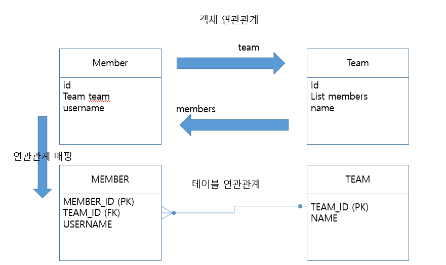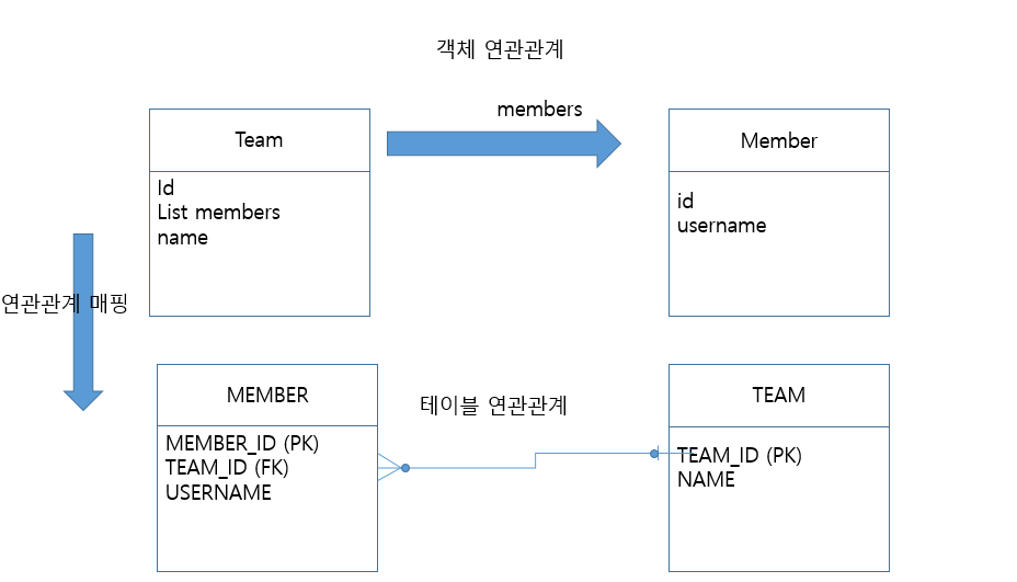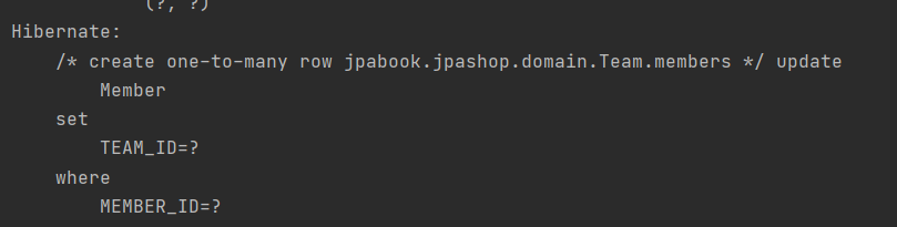 객체와 테이블의 차이때문에 반대편 테이블 에서 FK를 관리하는 구조 , 연관관계 관리를 위해 UPDATE SQL 이 실행된다.