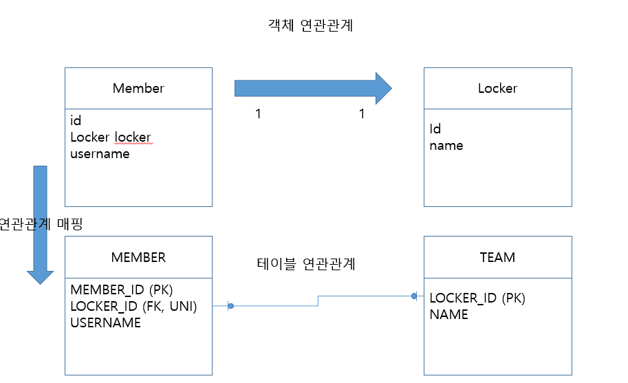 단방향일 때 , 일(1)이 연관관계의 주인으로 설정 보통 다(N)에 FK가 존재한다.