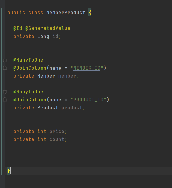 따라서 강의에서는 해결책으로 MEMBER_PRODUCT를 하나의 엔티티로 승격(?) 시키는것을 추천한다.