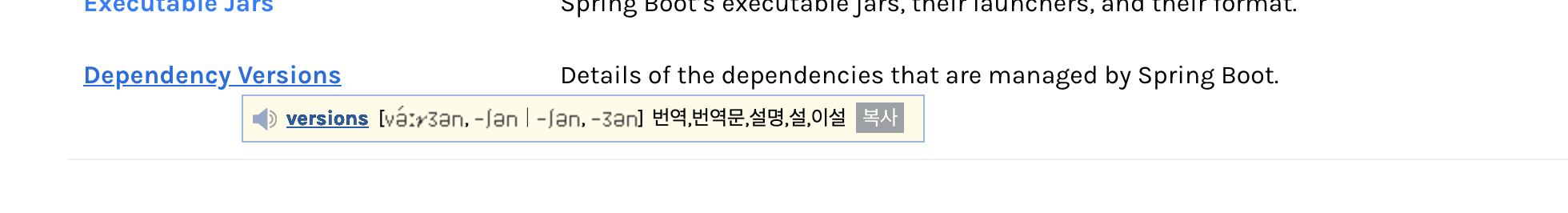 해당 스프링 부트 버전의 Reference Doc에 들어간 다음 ,