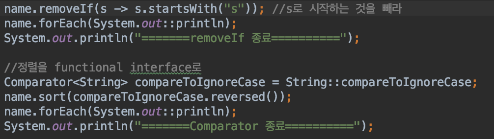 해당하는 조건을 제외하는 removeIf , sort에 유용한 comparator 등이 있다.